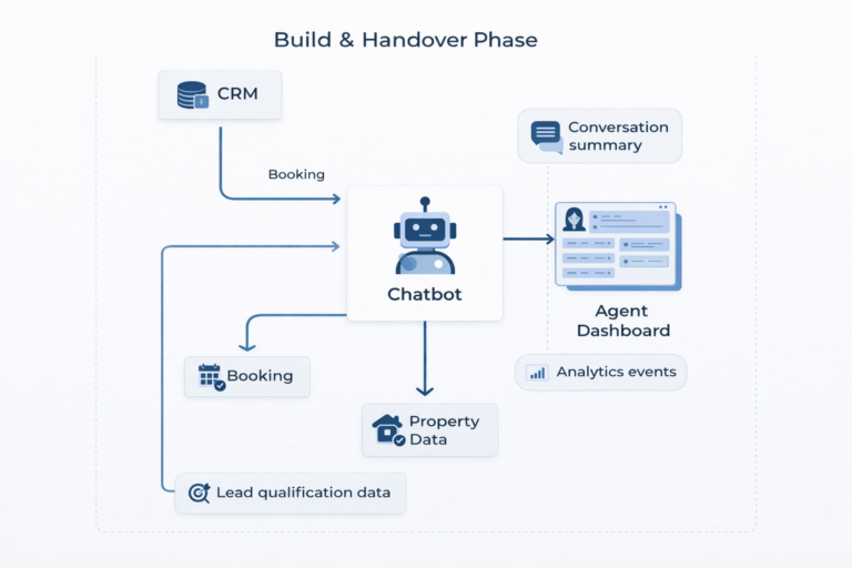 I collaborated with engineers on defining how the chatbot would integrate with existing systems such as CRM platforms, booking tools, and property management workflows. Clear guidance was provided on how conversation summaries and lead data should be structured to ensure agents received meaningful context when a handover occurred.