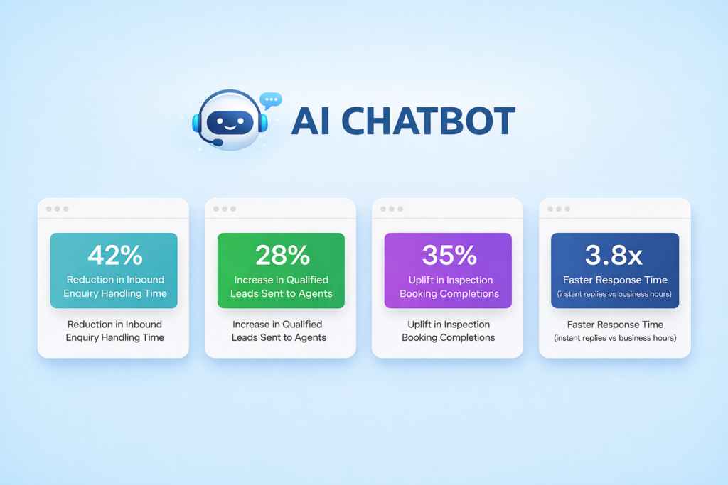 The AI chatbot successfully reduced response times for high-volume enquiries while improving lead qualification and operational efficiency for internal teams. Customers were able to access information instantly, book inspections with ease, and understand next steps without needing to call or email.